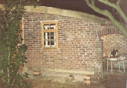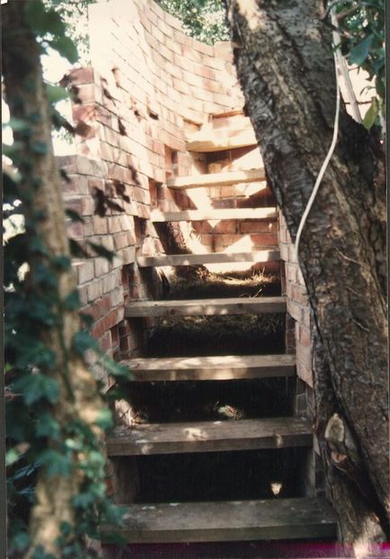 The barbecue is on the left and the arch in the staircase wall gives access to the base of the compost store